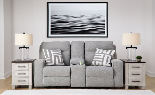 Biscoe - Power Reclining Loveseat With Console /Adj Headrest - Pewter