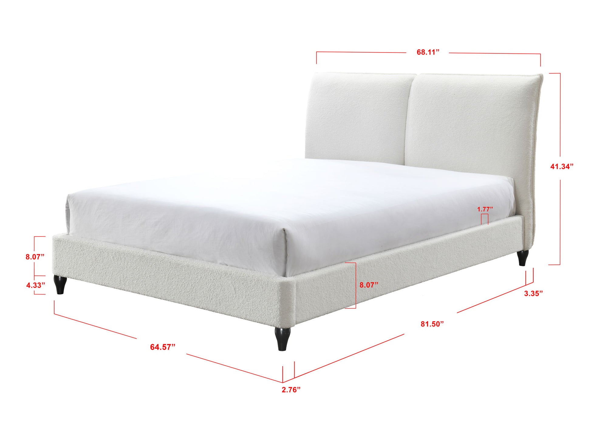 This lush contemporary bed frame is the perfect place to end your day. On trend boucle upholstery is stylish and timeless. Optional decking boards let you decide whether or not to use a box spring.