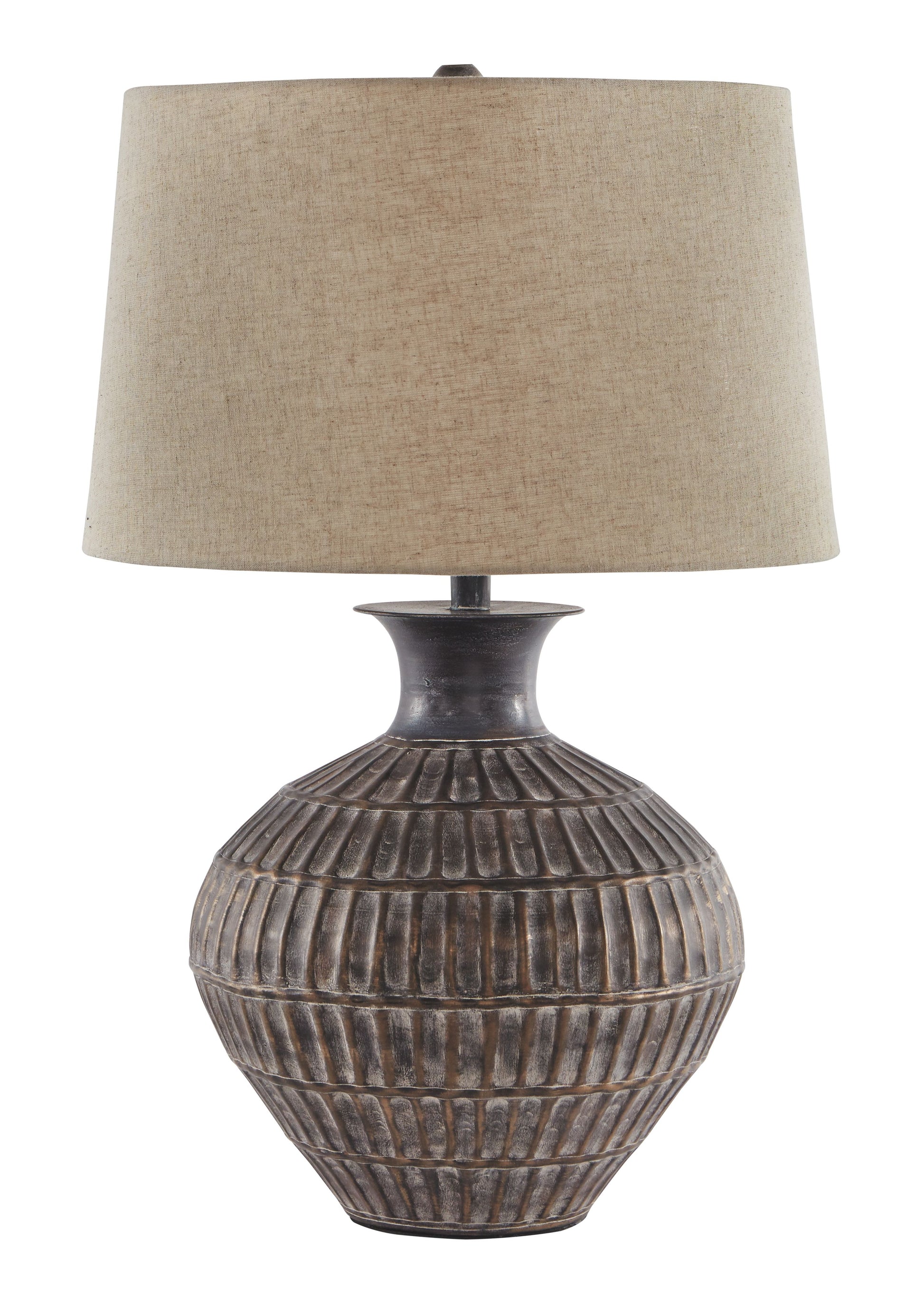 With this table lamp, you can cast a well-lit glow any time of day in style. Teeming with textured metal in a wide, shapely base, the bronze-tone finish gives that pop of casual chic flair you’ve been looking for.