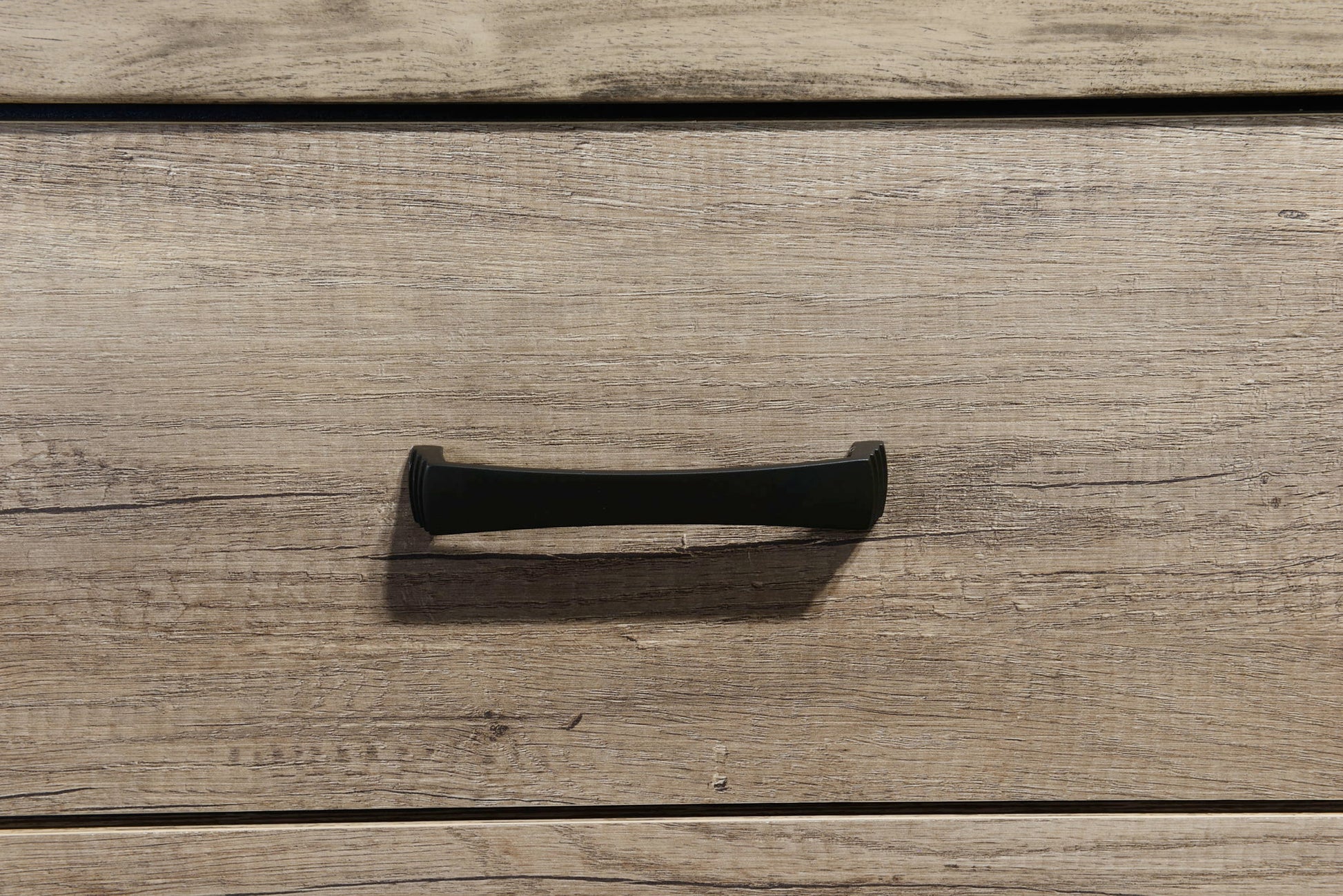 This modern bedroom collection features a clean-lined design with a stylish weathered gray finish. Sturdy and practical, each piece is equipped with ample storage and smooth metal hardware. The bed's bold headboard is a standout element, making it the focal point of the room. This set is perfect for anyone looking to add a touch of contemporary sophistication to their bedroom without sacrificing functionality.