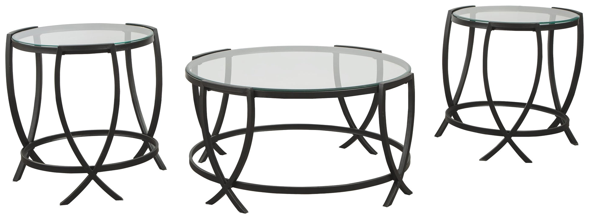 What a clear winner for lovers of contemporary style. Making a brilliant impression with its metal arc X-motif, this coffee table set is sure to round out your space with fashionable flair.